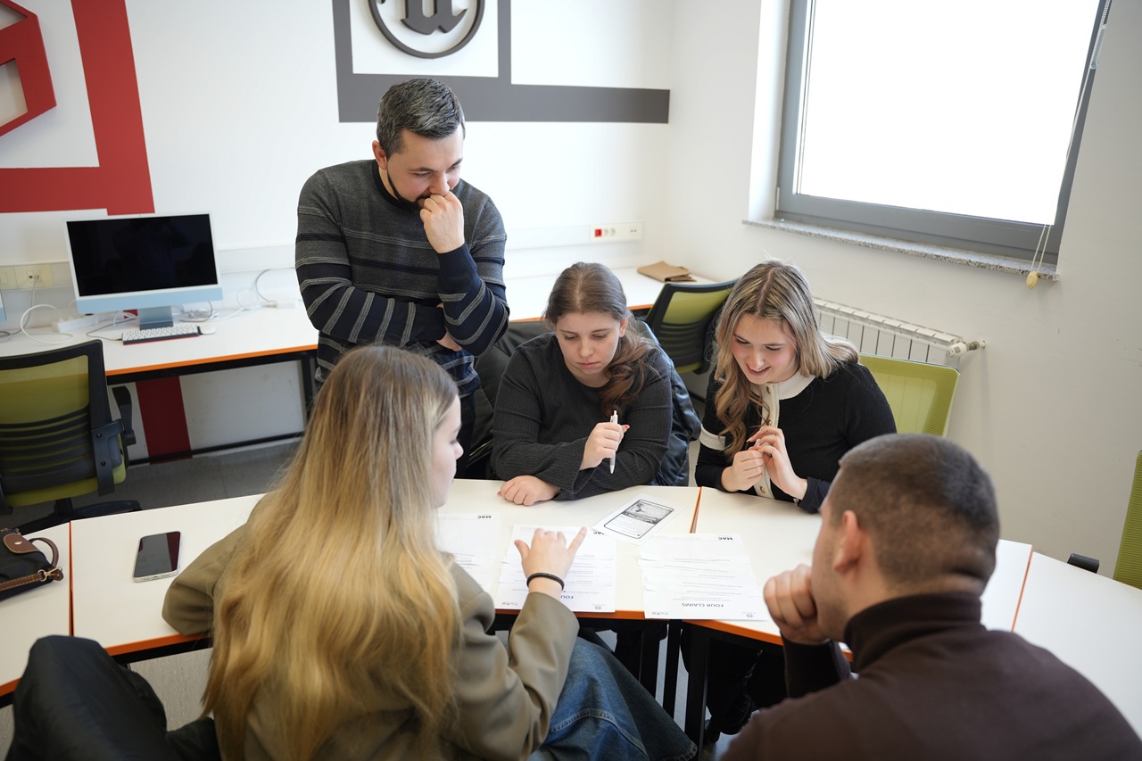 Ardından öğrenciler, Yrd. Dç. Dino Cviko tarafından yürütülen “Journalist for a Day” başlıklı interaktif atölye çalışmasına katıldı. Atölye kapsamında ekipler halinde çalışan katılımcılar, medya okuryazarlığı ve doğrulama becerilerini uygulamalı olarak deneyimleyerek sorumlu gazeteciliğin temel unsurlarını dinamik ve ilgi çekici bir ortamda keşfetme fırsatı buldu. Bu çalışma, MAC programında eğitimin pratik, yaratıcı ve ekip çalışmasına dayalı yapısını, medya dünyasıyla kurduğu güçlü bağ üzerinden ortaya koydu.